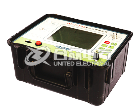 電纜故障閃測儀法, 在電纜故障相上施加直流高壓或沖擊高壓使故障點絕緣瞬時擊穿,利用擊穿放電時的電波來回反射的時間及電波在電纜中的傳播速度,可求得故障點距離。電纜故障閃測儀可分為數字直讀式和示波器式兩種。用合眾電氣閃測儀測故障時不需事先將高阻接地燒穿,故電纜故障閃測儀法被廣泛采用。
