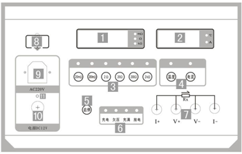 4、溫度/電流選擇 5、啟停鍵6、工作狀態指示燈