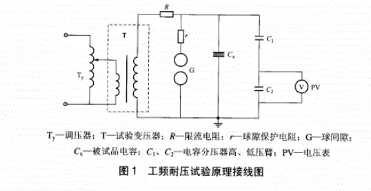 交流耐壓試驗的接線,應(yīng)按被試品的電壓、容量和現(xiàn)場實際試驗設(shè)備條件來決定。通常試驗變壓器是成套設(shè)備。圖1是一種典型的試驗接線。