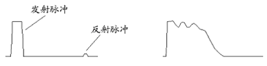 (7)增益調(diào)節(jié):用于調(diào)節(jié)輸入、輸出脈沖幅度大小,使用時(shí)應(yīng)根據(jù)屏幕顯示波形進(jìn)行調(diào)節(jié)。調(diào)節(jié)過小時(shí),脈沖反射很小,甚至無法采樣,如圖3。調(diào)節(jié)過大時(shí),反射脈沖相連與基線無交點(diǎn)甚至基線會(huì)變成斜線,如圖4。一般采樣前,增益調(diào)節(jié)旋鈕旋轉(zhuǎn)1/3左右,然后根據(jù)波形大小再進(jìn)行調(diào)節(jié),重新采樣。