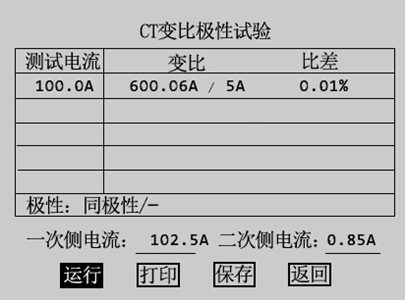 互感器綜合特性測試儀試驗(yàn)結(jié)束后,屏幕顯示出變比極性試驗(yàn)結(jié)果界面,如圖3.21所示。