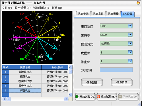 GPS對時:將微機繼電保護測試儀的系統(tǒng)時間同GPS衛(wèi)星時間保持同步,該功能必須在完成GPS連接后才能實現(xiàn)。