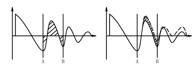 在任意指定的區間內,對標準線圈和被測線圈波形面積進行比較。如圖1-4-1所示,計算出A-B區間內的面積(如圖中陰影部分),判定兩者面積相差的程度。即兩波形在A-B區間的面積相減后的絕對值與標準波形在A-B區間內的面積相除;判定的標準用百分比(%)進行設定,計算結果在范圍內的為合格品。