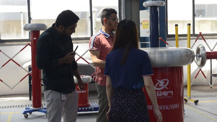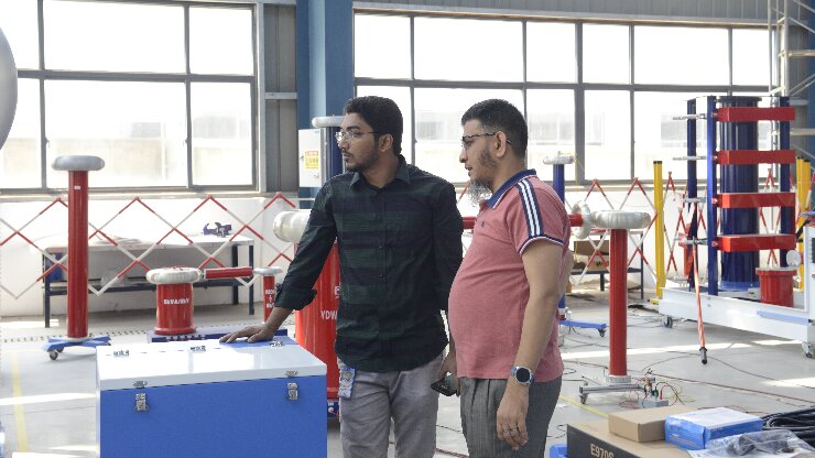 在武漢市合眾電氣技術團隊的陪同下,孟加拉客戶深入參觀了智能化生產車間與高壓實驗室。客戶重點觀摩了局部放電測試系統的現場演示,對其高精度檢測能力與抗干擾性能表示認可;在沖擊電壓發生器測試區,設備穩定的波形輸出與模塊化設計引發了客戶濃厚興趣。客戶現場表示:"合眾電氣的全流程質量控制體系與國際標準接軌,完全符合孟加拉電網試驗項目的嚴苛要求。"